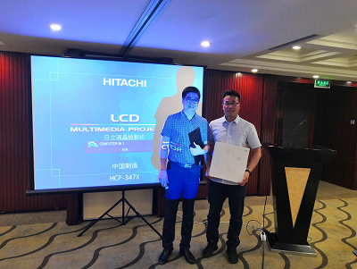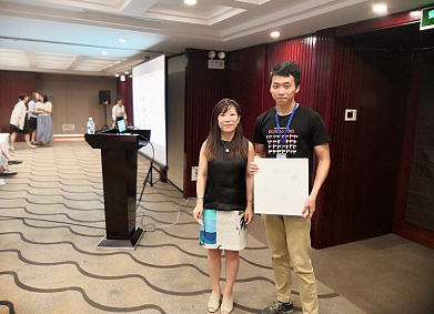After the end of Dr. Tian’s lecture, the second round of the lucky draw was held; the picture shows the winning person taking a group photo with Dr. Tian.