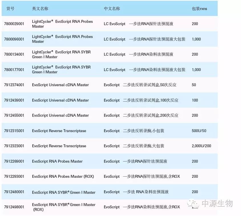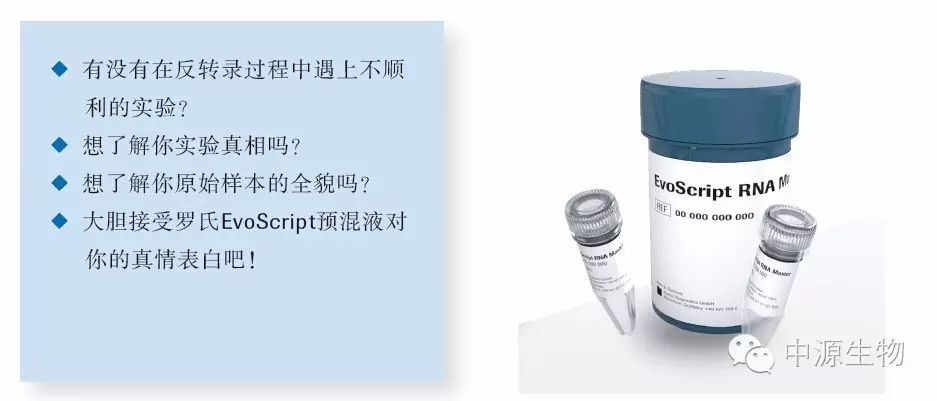 √ Roche's new generation EvoScript master mix, an enzyme to complete two-step experiments of reverse transcription and fluorescence quantitative detection;