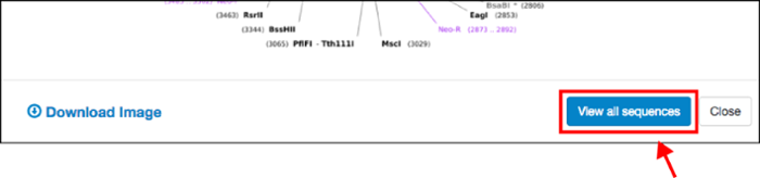 Once you’ve identified a plasmid that you want to learn more about, updates to our sequence analyzer will allow you to dive into the details. Click on the “View all sequences” button to find all available sequence information from Addgene depositors and our own sequencing results: