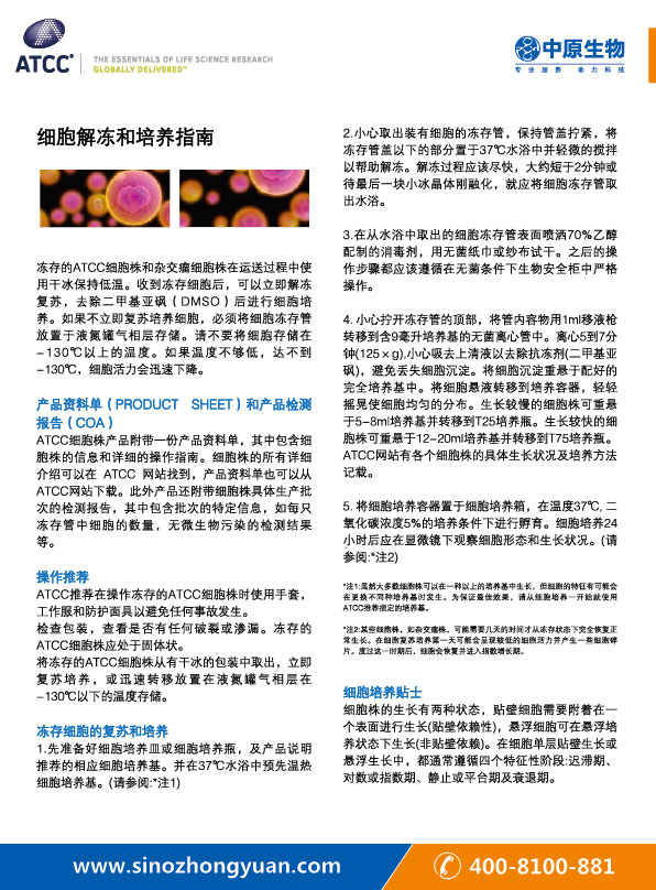 ATCC Cell and Bacterial Thawing and Culture Guide