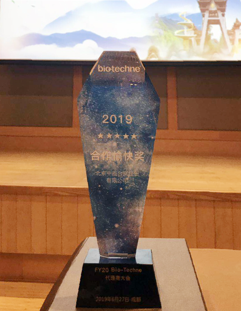 Zhongyuan Company won the FY19 Annual Cooperation Happy Award of Bio-Techne Company