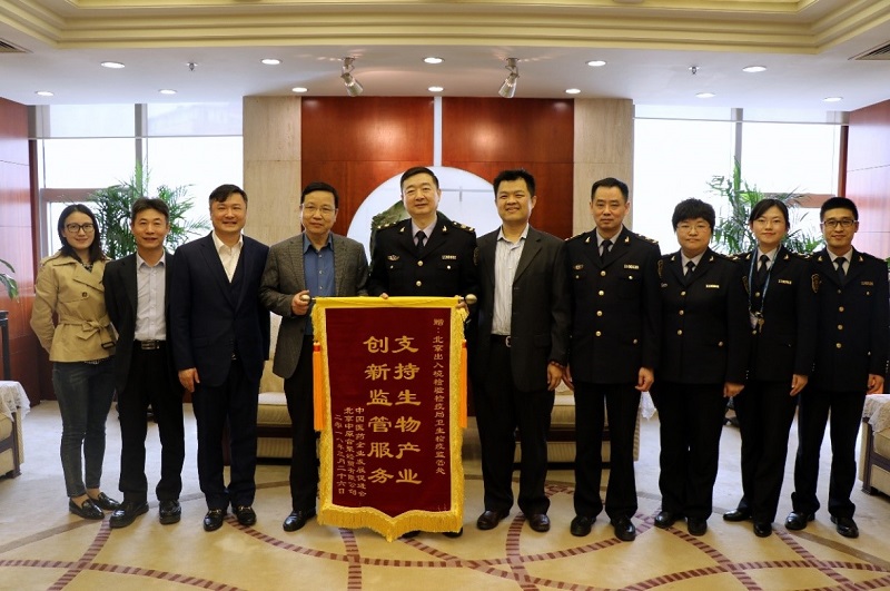 2018年3月28日,中國醫藥企業發展促進會(以下簡稱“促進會”) 副會長姚桐利和中原公司總裁朱曉勇、副總裁李志剛一起,向北京出入境檢驗檢疫局(以下簡稱“北京國檢局”)衛生監督處贈送了錦旗,為其多年來對我國生物醫藥產業的大力支持,不斷創新監管服務表示感謝。北京國檢局副局長邵白、衛生處處長黃健華代表北京國檢局表示感謝并進行了親切座談。