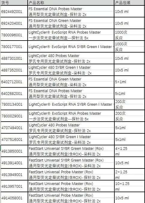 當然如果您的儀器需要進行ROX校正,才能得到準確的熒光結果,羅氏也能提供另外一系列試劑:FUMM預混液(含ROX校正染料)。