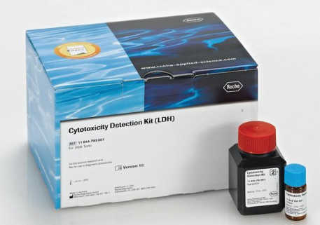 Cytotoxicity Detection Kit(LDH)是基于檢測受損細(xì)胞釋放的LDH活性,從而對細(xì)胞毒性進(jìn)行快速簡單的定量。當(dāng)細(xì)胞膜發(fā)生損傷時,細(xì)胞會釋放LDH到細(xì)胞上清中。LDH是個穩(wěn)定的細(xì)胞質(zhì)蛋白,正常情況下在所有細(xì)胞中保持幾乎相同的濃度。