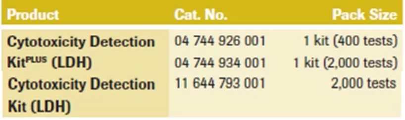 Cytotoxicity Detection KitPLUS (LDH)包含了Cytotoxicity Detection Kit (LDH) 的優(yōu)點(diǎn),同時額外增加試劑stop solution,操作更加簡便。