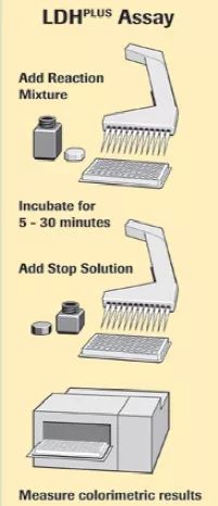 圖3. Cytotoxicity Detection KitPLUS (LDH)操作綜述;由于無移液、離心、預(yù)洗及預(yù)標(biāo)記等步驟,操作簡單。