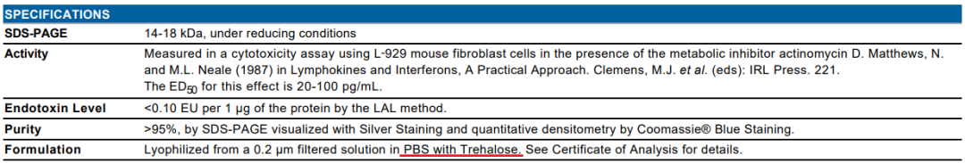 注:并不是所有不標注 CF 的蛋白產品都含有 BSA,產品的具體成分需要參考產品說明書或 COA。