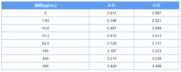 我們推薦使用 fraction V(第五組分),無蛋白酶的 BSA,例如 Reagent Diluent Concentrate 1 或 2(貨號 DY995,DY997)。后續用戶使用 DY008 附屬試劑盒替代之前的附屬試劑,重新實驗,結果恢復正常。