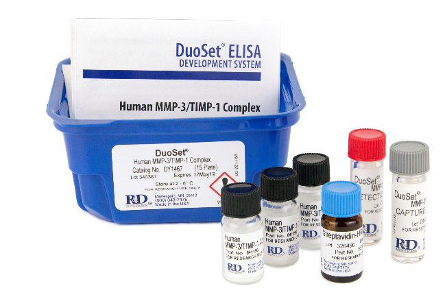說起 DuoSet? 系列,其屬于開發型 ELISA 試劑盒,適合動手能力強、經驗豐富的 ELISA「資深玩家」,特別適用于在各種不同平臺上進行免疫學實驗開發設計,為研究者提供極為經濟、靈活、快捷的方案。DuoSet? ELISA 試劑盒的組分包括:捕獲抗體、生物素化檢測抗體、校正的蛋白標準品、鏈霉親和素偶聯的辣根過氧化物酶(Streptavidin-HRP)。