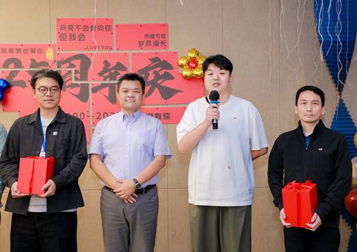 在全場熱烈的掌聲中,紀念品發放有序進行。隨后,李童總經理、王鳳源經理、劉玲玲經理作為代表分享感言,言語間滿是對公司的歸屬感。他們紛紛表示在中源的這些年,收獲了許多成長,未來還將繼續與公司同頻共振,貢獻更多力量。最后,全體干部手持紀念品,在鏡頭前留下合影 —— 燈光定格的瞬間,不僅是一張照片,更是一份凝心聚力、共話未來的珍貴記憶。?