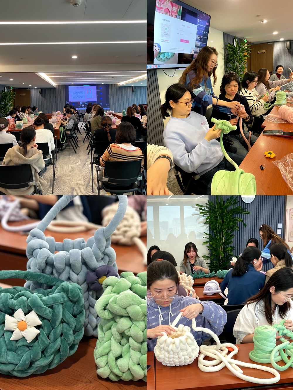 ??一場充滿溫暖與創意的編織之旅伴隨著東方國科女職工開展的“物盡其用,編繩暖心”主題活動悄然展開。女職工們在了解了冰島粗毛線的特點及編織技巧后,按照步驟不停地將毛線在手中翻動,完成了編、織、串、粘等一系列動作,感受了慢工細作的治愈力量,傳遞了綠色低碳的生活理念。一個個被精心制作而成的編織包裝點了明媚春光,一份份勤儉低碳的理念在指尖綻放。